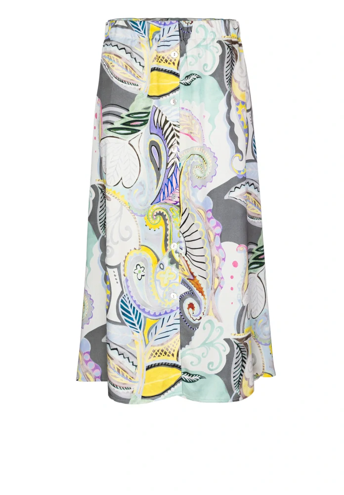 - Lehká letní sukně s falešnou knoflíkovou légou v midi délce