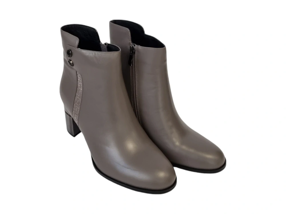 Urban ladies šedé kožené kotníkové boty s designovým podpatkém
