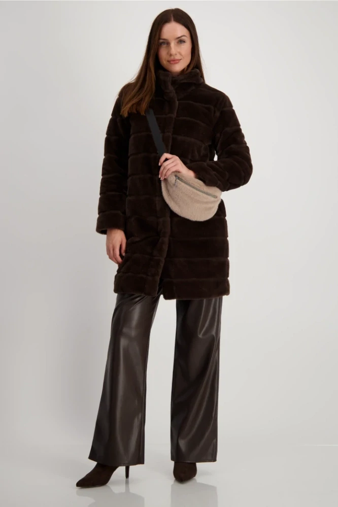 Monari útulný a stylový kabát z umělé kožešiny