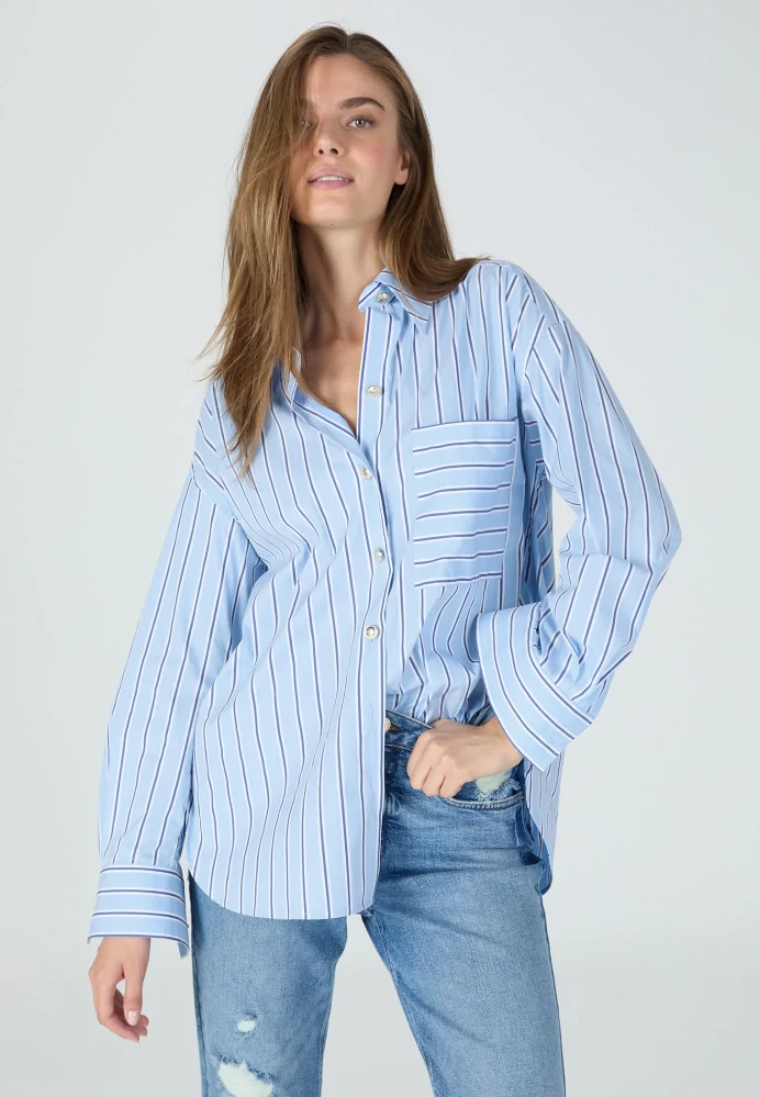 - Detaily: Náprsní kapsa, manžety na jeden knoflík, boční rozparky a zaoblený dolní lem.