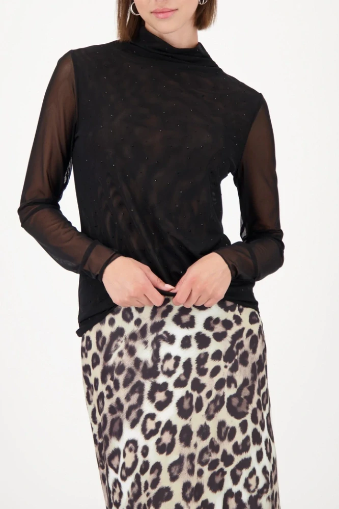 Monari černá halenka z jemného tylu s třpytivými detaily