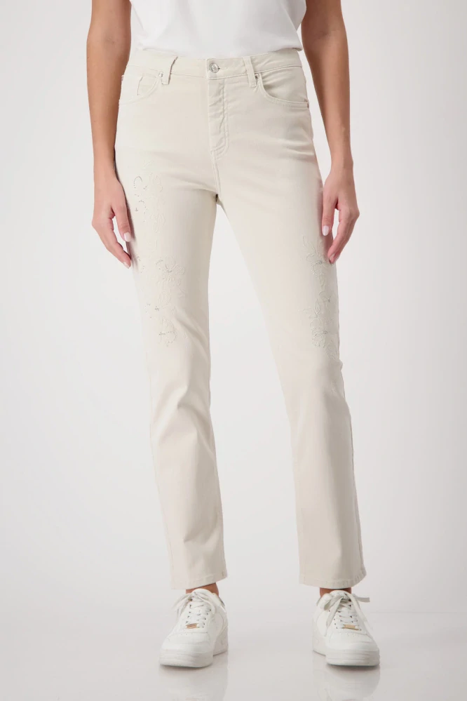 Vysoce kvalitní bavlna Pružný materiál Styl s 5 kapsami Výšivka Květinový vzor Kamínky Rovně.   Velikost 34Pas-66, bok-86, délka-101 Velikost 36Pas-72, bok-92, délka-102 Velikost 38Pas-76, bok-96, délka-102 Velikost 40Pas-80, bok-100, délka-102 Velikost 42Pas-86, bok-104, délka-103 Velikost 44Pas-... celý popis