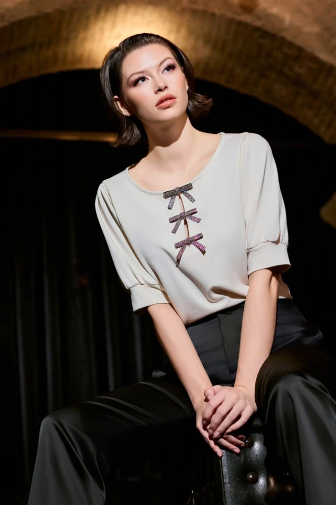 Monari elegantní krémová halenka s ozdobnými mašličkami