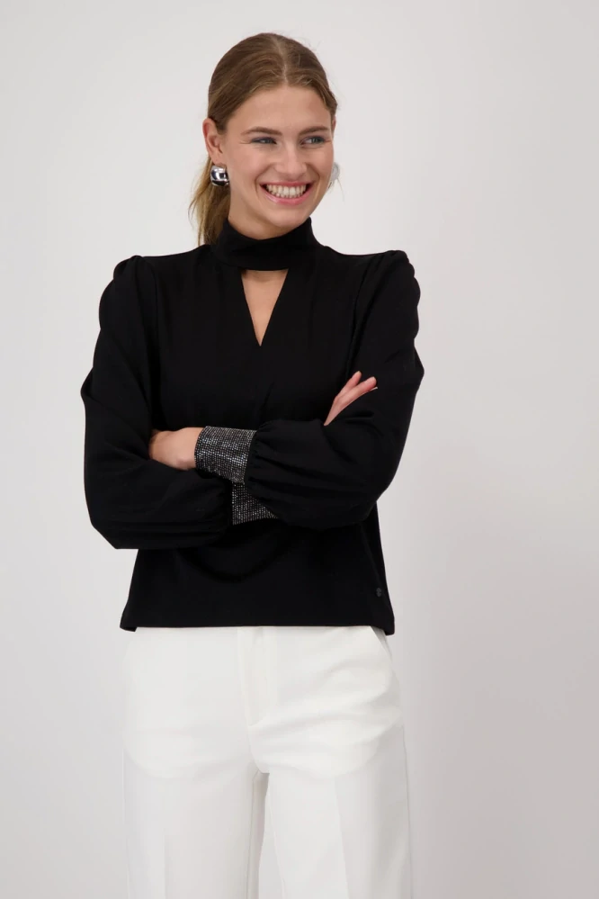 Monari dámská elegantní jednobarevná halenka s dlouhým rukávem černá