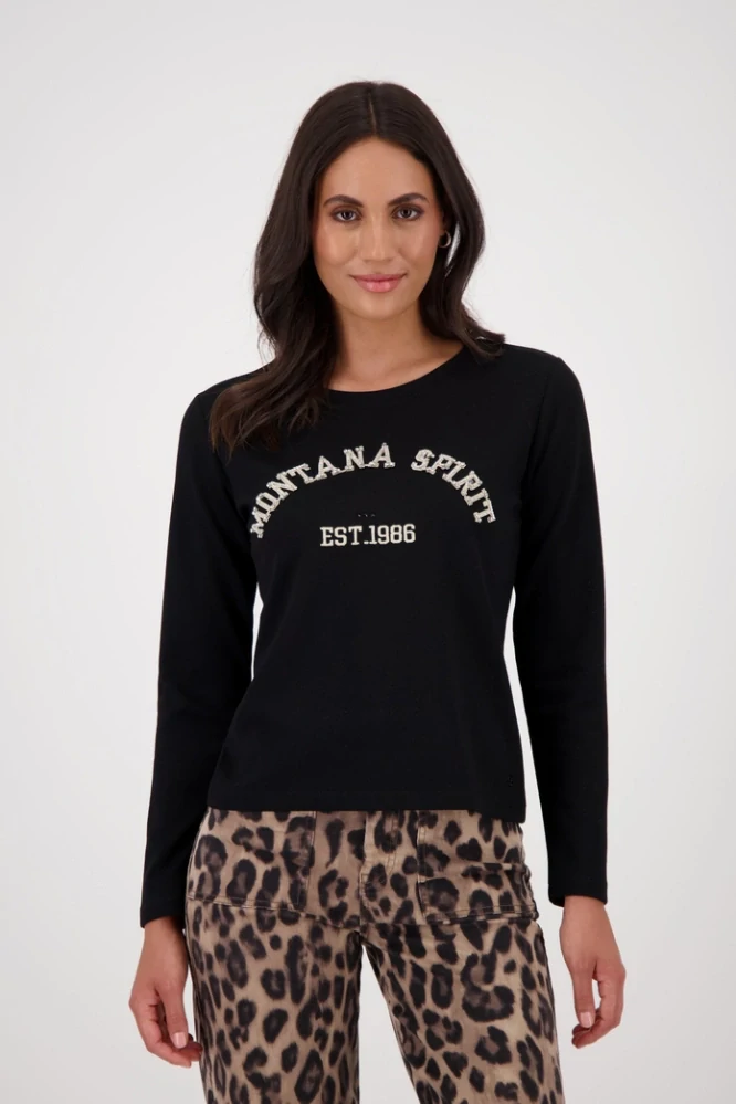 Splývavá viskóza Elastický materiál Měkký pocit Kamínky Flitry Nápis „Montana Spirit“ Běžný střih Kulatý výstřih Dlouhé rukávy   Velikost 34Prsa-92, délka-56 Velikost 36Prsa-96, délka-58 Velikost 38Prsa-104, délka-60 Velikost 40Prsa-108, délka-62 Velikost 42Prsa-116, délka-64. celý popis