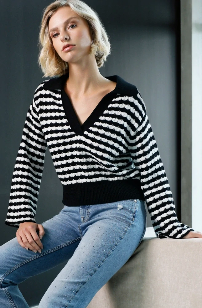 Monari polo svetr se strukturovanými pruhy