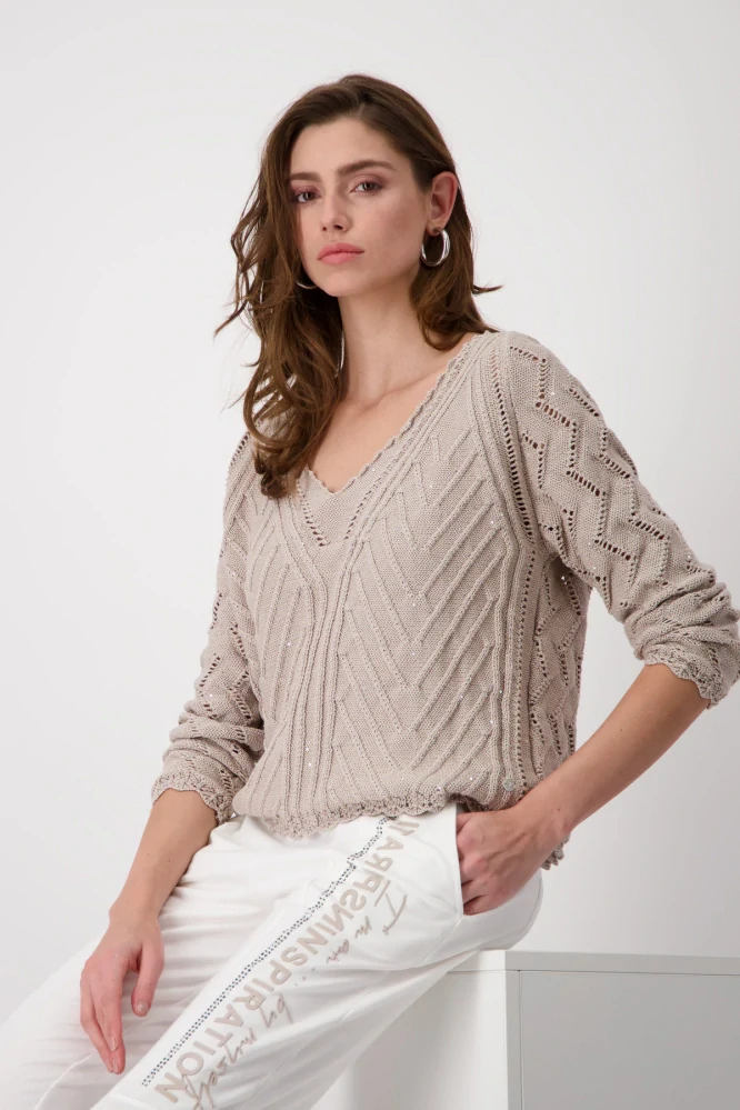 Monari stylový dámský pletený svetr s jemným vzoremSkladem 1 ks3 199 Kč/ ks2 644 Kč bez DPH