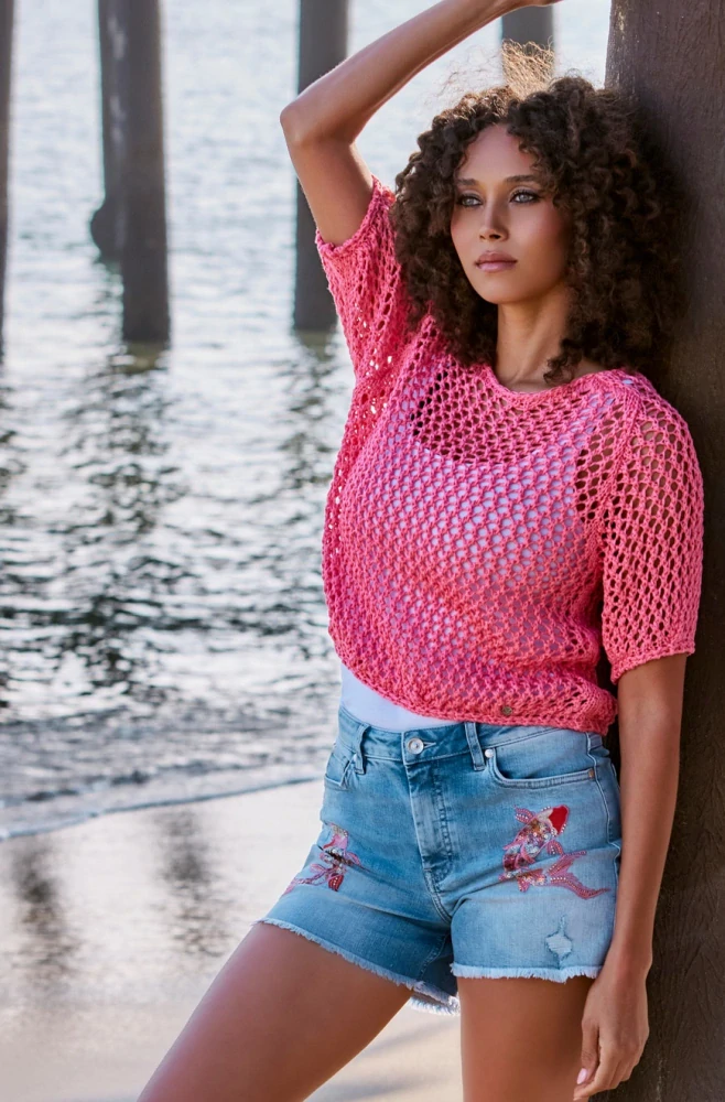 Monari svetr s krátkým rukávem a lodičkovým výstřihem