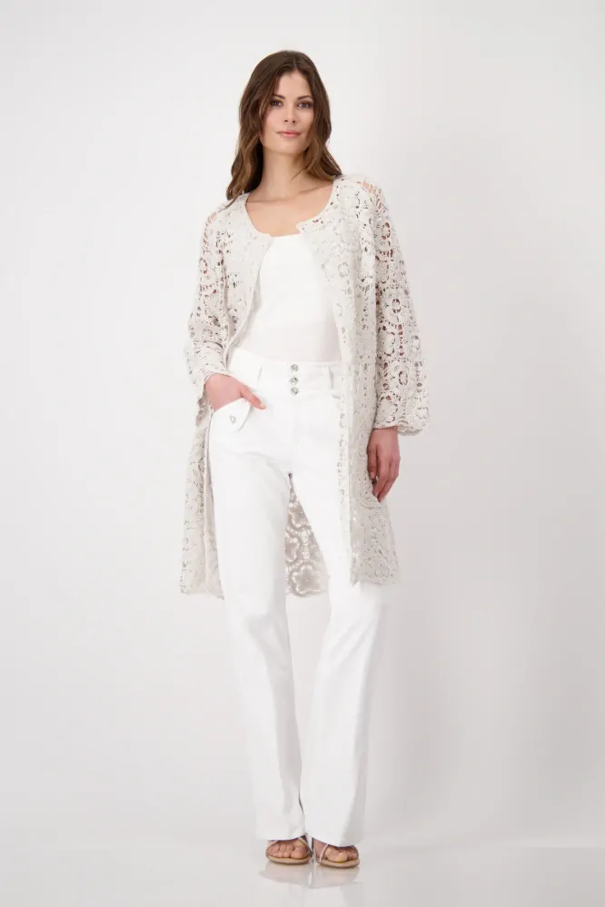 Tento pletený kabát z vysoce kvalitní bavlny zaujme elegantním lurexovým efektem.