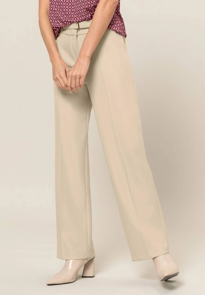 Naše nové strečové kalhoty Parigi přicházejí v klasické barvě „bisquit“! Díky rovnému dlouhému střihu s mírně širší nohavicí a kvalitní směsi materiálu s elastanem se velmi příjemně nosí. Široký, tvarovaný pas s elegantním látkovým páskem, stejně jako malá kapsička na mince a lisovaný ohyb dělají z Parigi moderního všestranného. V kombinaci s blejzrem a halenkou nebo i košilí získáte trendy vzhled pro mnoho příležitostí a událostí!