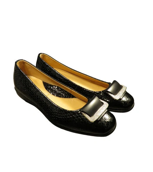 Urban Ladies stylové černé baleríny s jemným lesklým hadím vzorem